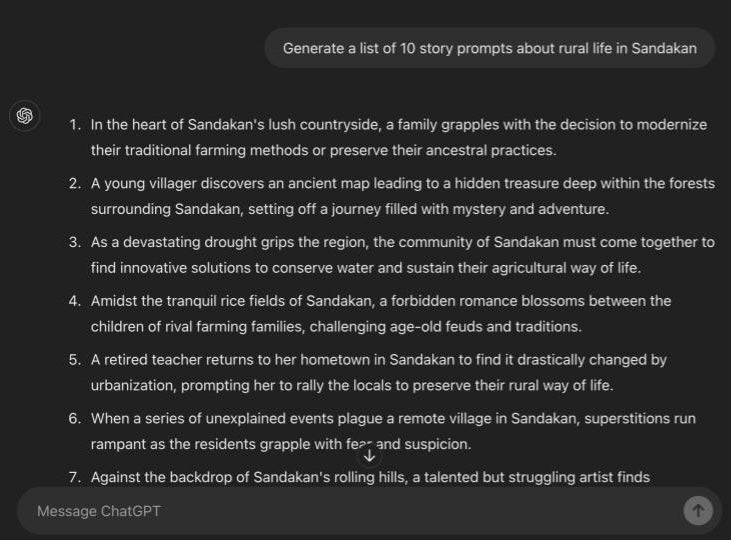 Unleash your creativity with ChatGPT’s support in writing stories, developing characters, and crafting various narratives. ChatGPT’s assistance in the creative-writing process can be a wonderful way to help overcome writer's block and generate unique story ideas that you further build on to make them your own.