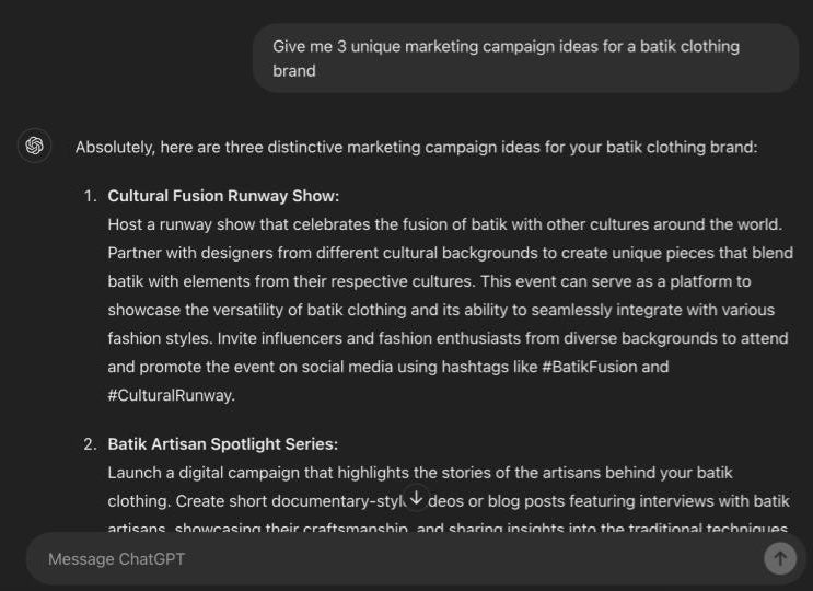 Generate marketing strategies and optimise your content for search engines with ChatGPT’s insights. By leveraging ChatGPT’s marketing strategies, you can come up with innovative marketing campaigns, write persuasive ad copy, improve your website’s SEO rankings, fine-tune your audience targeting, and so much more.